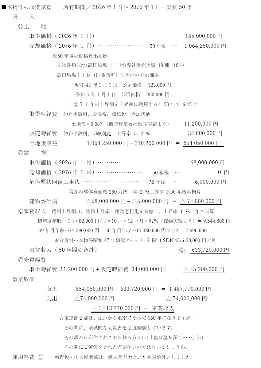 地域と安全を優先することで、地価・建築費が上昇し、利回りが低くなっていますが、“将来の安心”のためであることをご理解下さいますよう宜しくお願い致します。